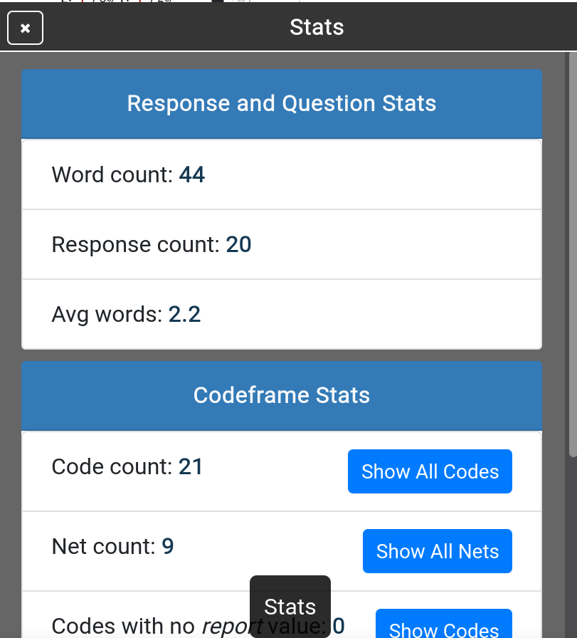 Click the button to display the results of the Codeframe Stat in the Coder Codeframe.