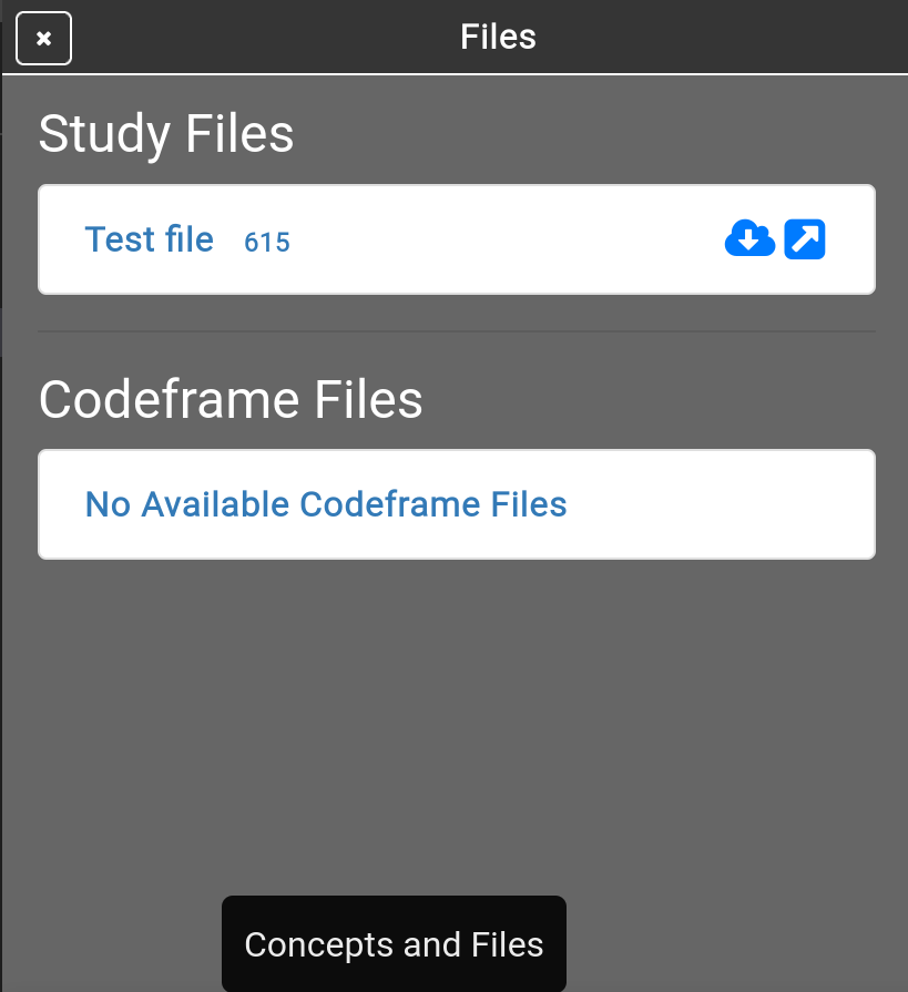 Displays concepts and/or files associated with the study, and provides the ability to download or view them.